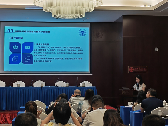 工作会议之后,由继续教育学院赵桂芝副院长主持,会议进行了三个业务专题培训。继续教育学院招生与教务办公室主任汤晓兰、校外教学点管理办公室主任彭金生和湖南世纪超星公司刘人洋分别做了《新形势下乐动买球_乐动买球(中国)校外教学点教学与学籍管理》《新时代下乐动买球_乐动买球(中国)教学点设置与管理》;《乐动买球_乐动买球(中国)校外教学信息化管理系统操作》专题培训。